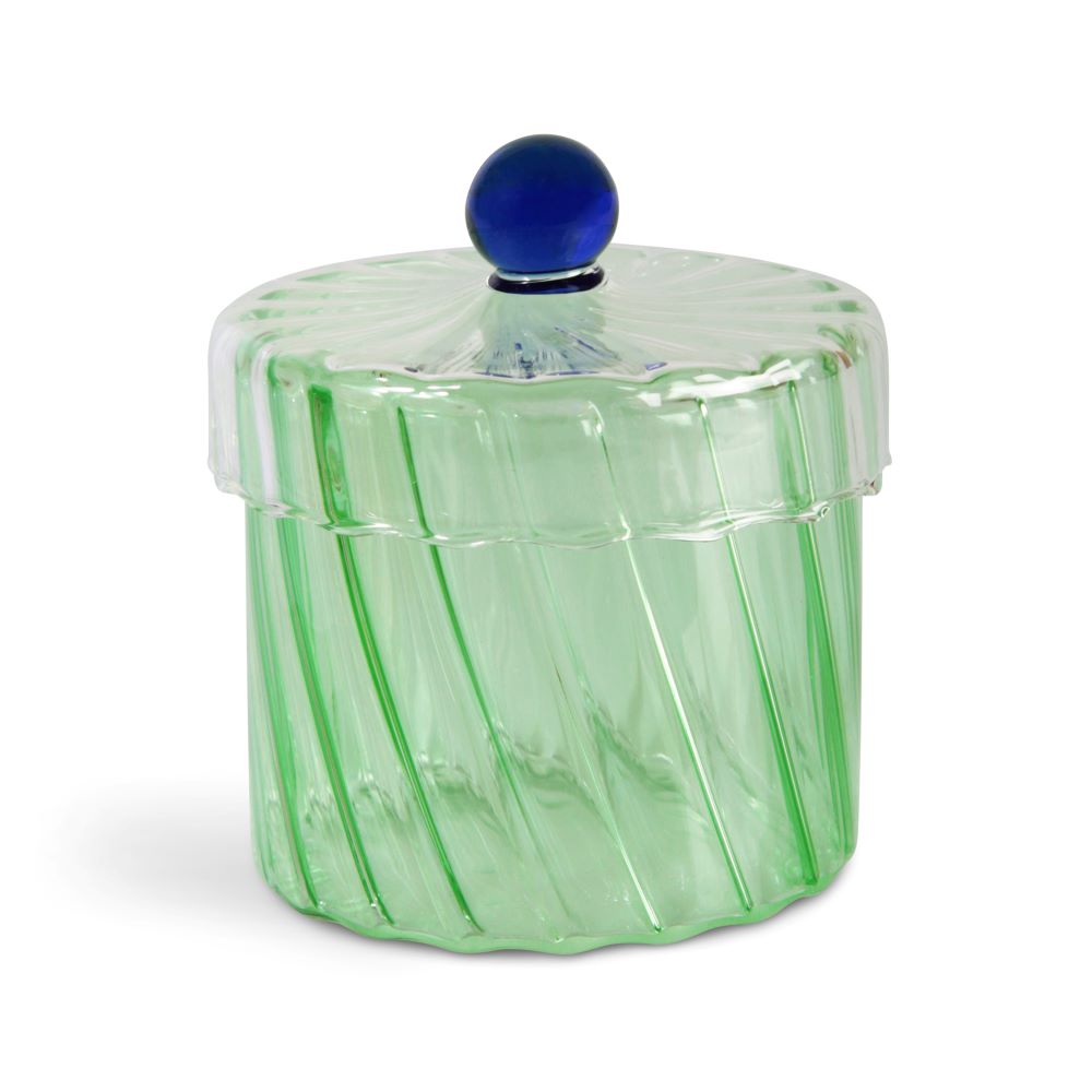 Ce pot au design délicat vous permet de ranger des petits objets de la maison : précieux bijoux, carrés de coton ou encore friandises. Le verre spiralé apporte une touche vintage et colorée à votre habitat.