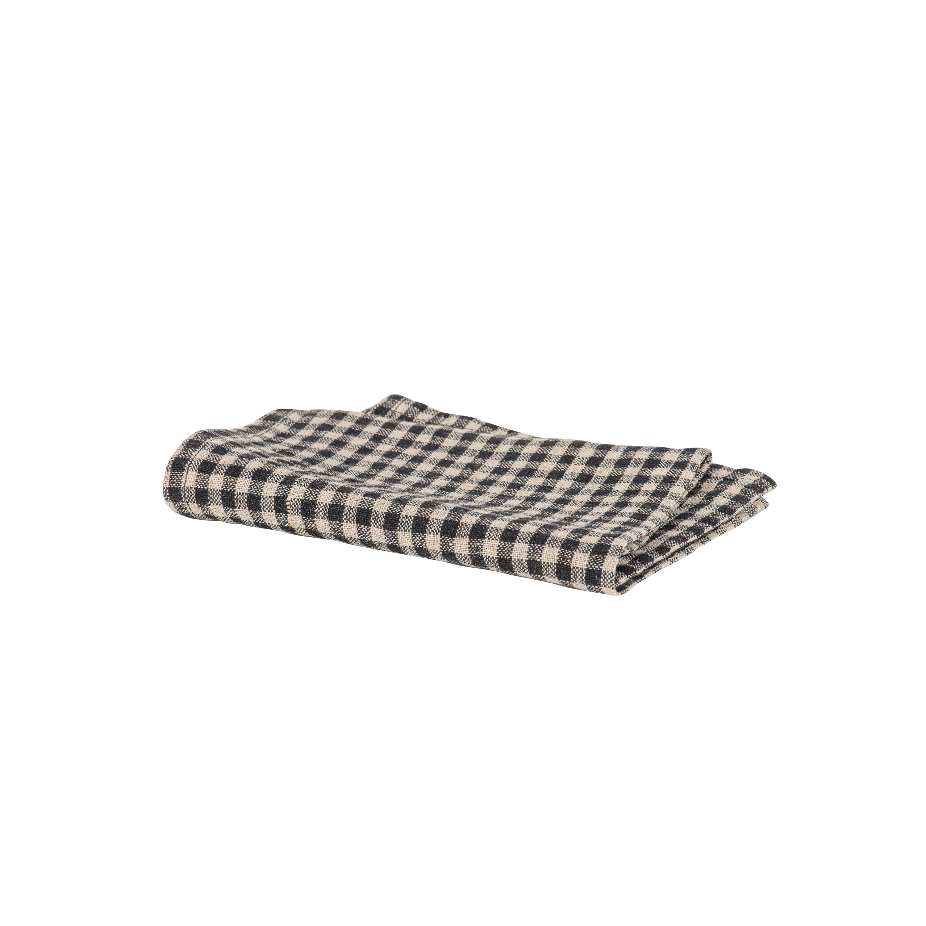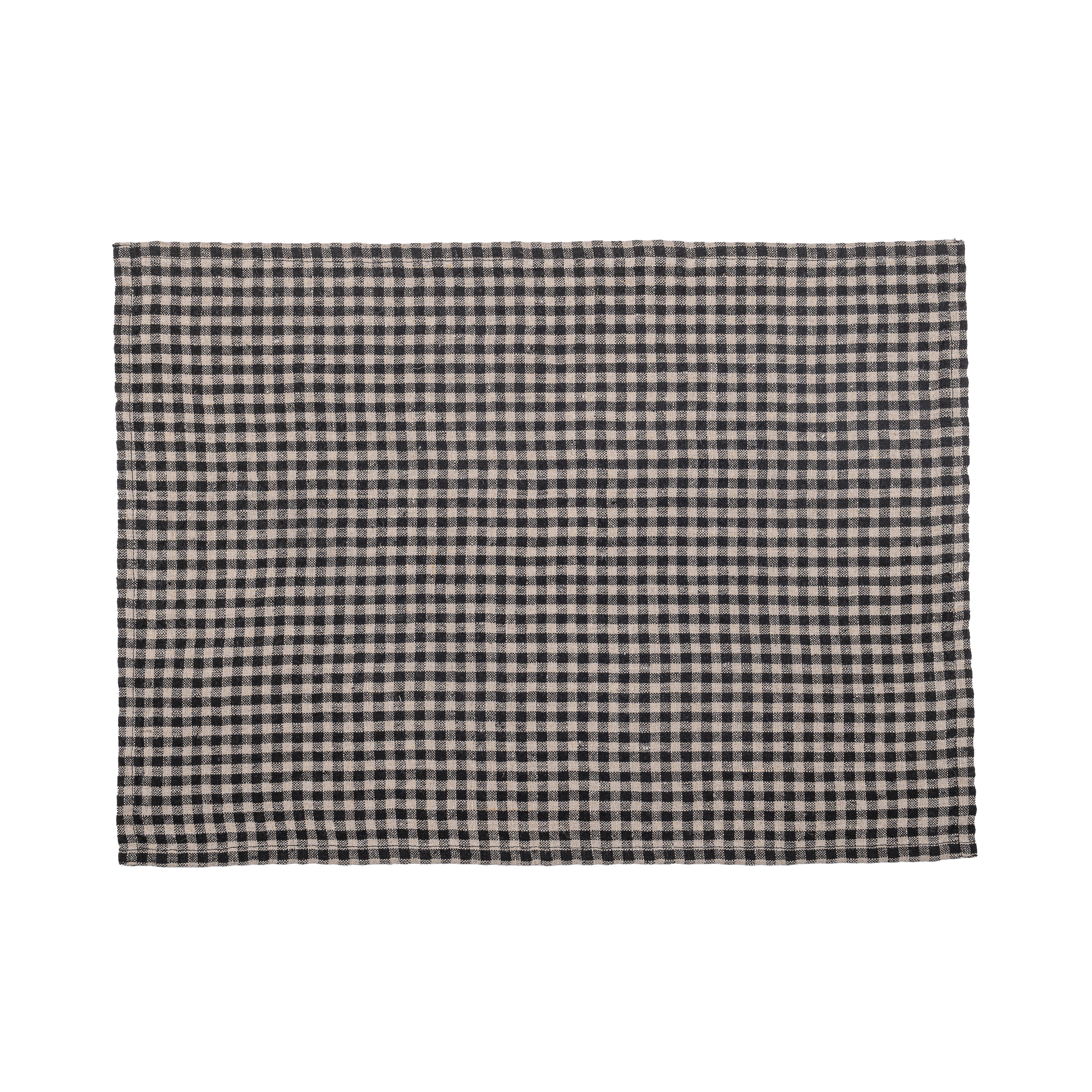 Serviette/set de table en lin à carreaux de couleur charbon.