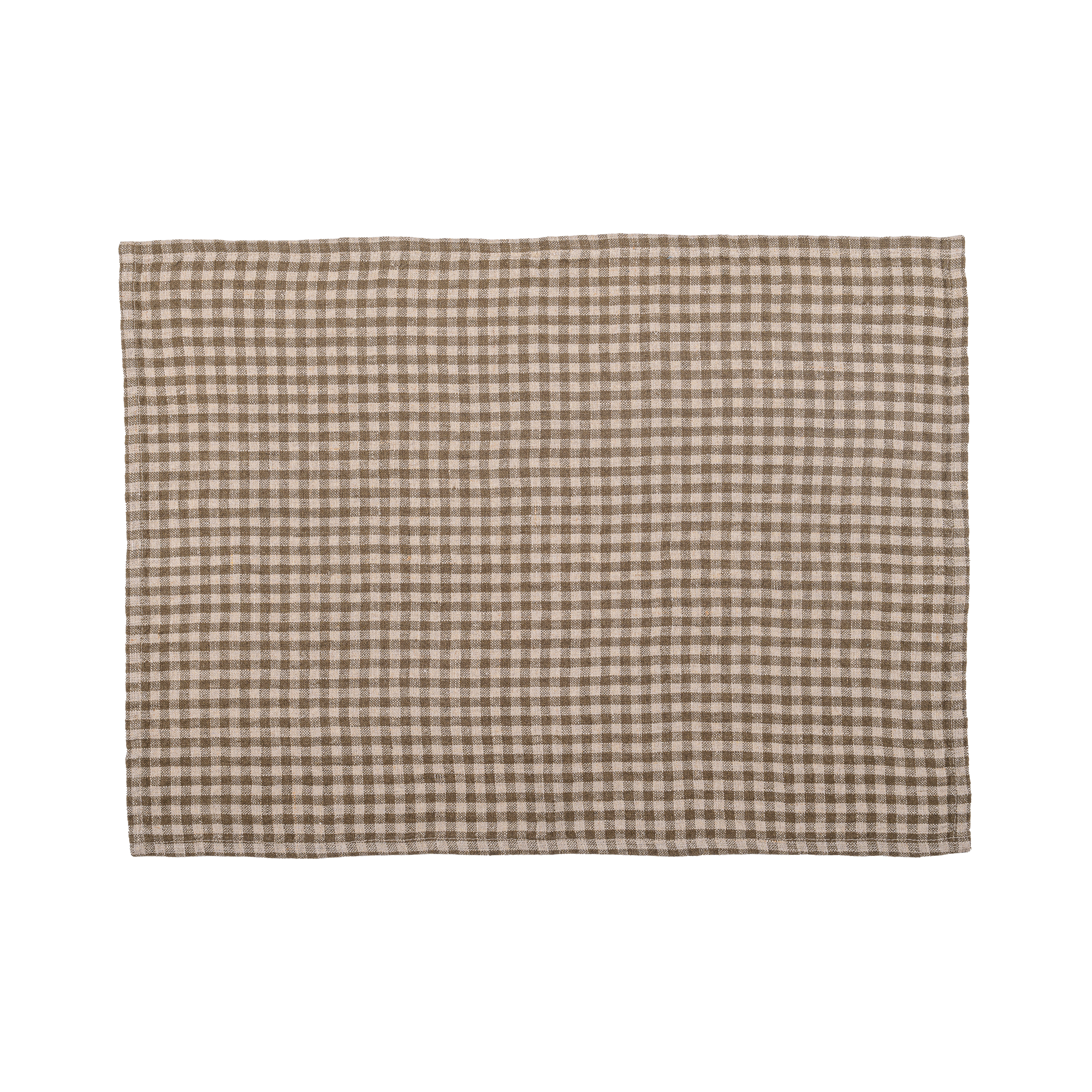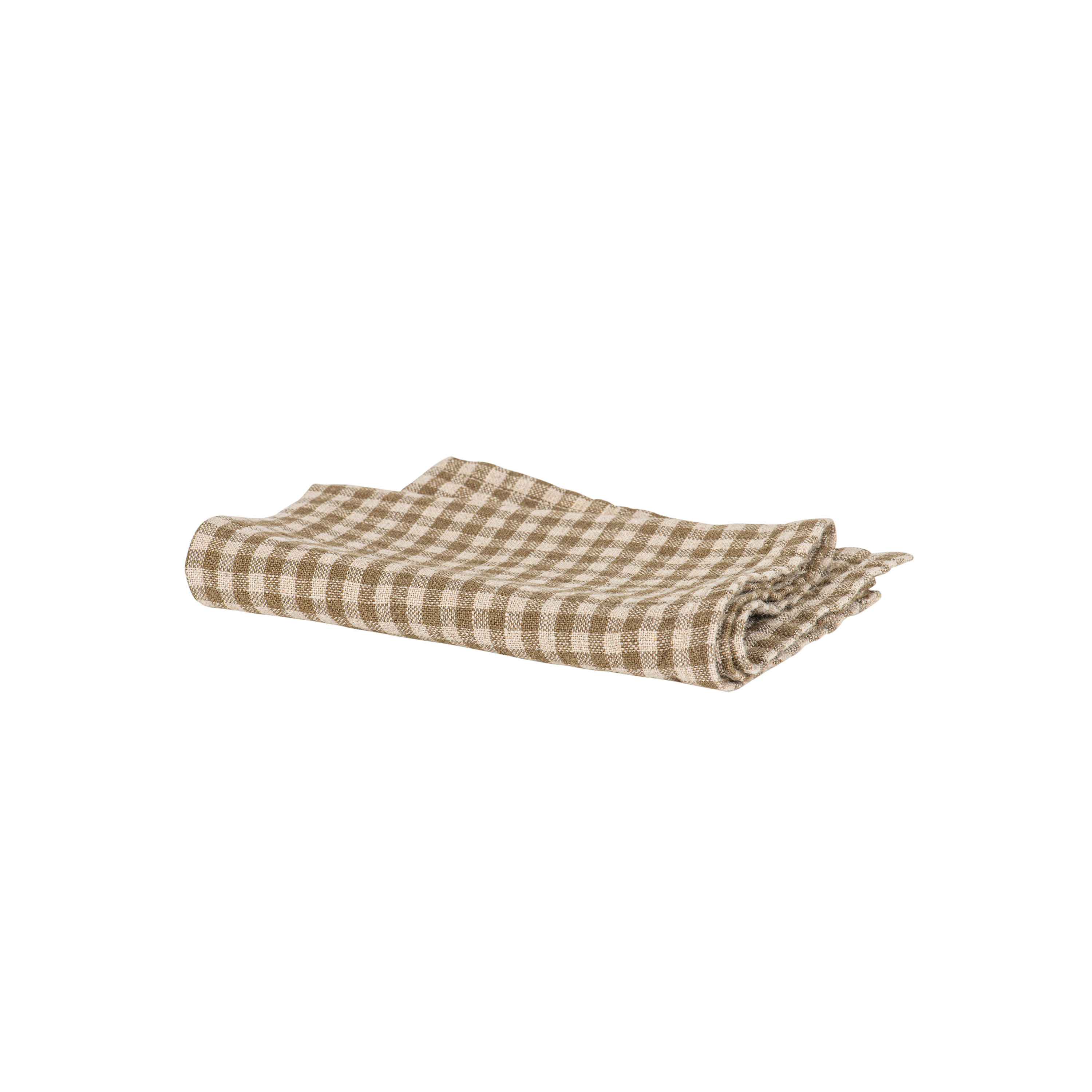 Serviette/set de table en lin à carreaux de couleur kaki.